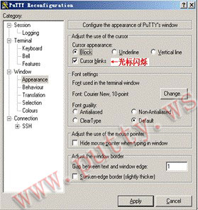 5.1.4 putty光标闪烁(Currsor blinks)-辅助选项