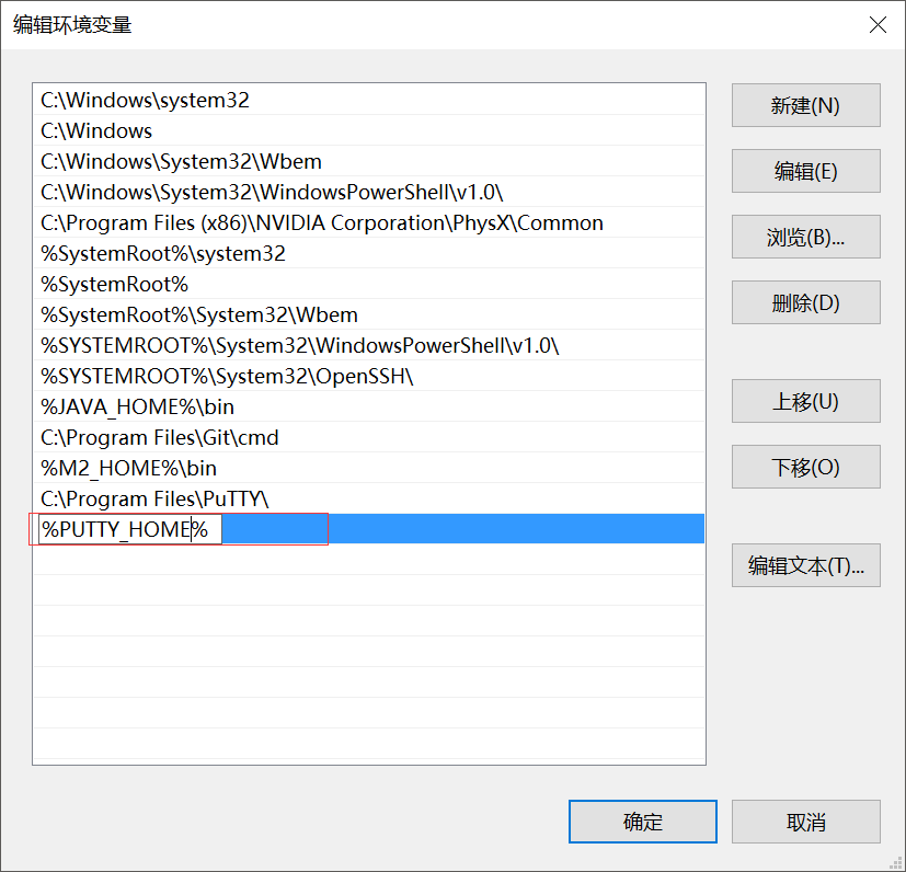 将putty安装目录加入Path环境变量,在进行文件传输时,需要用到pscp.exe。
